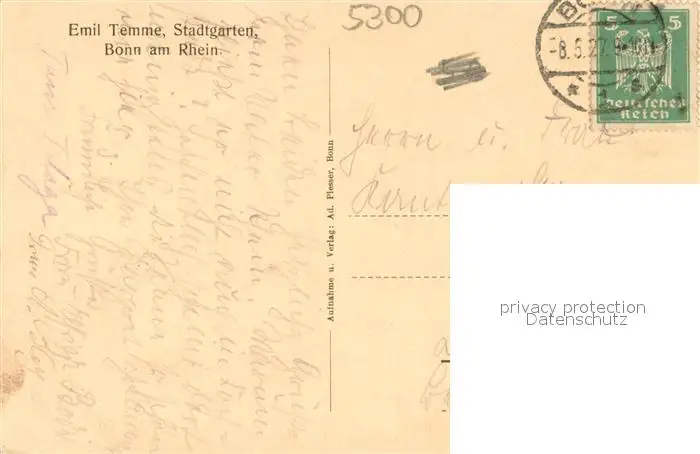 Bonn_Rhein Stadtgarten Rheinpromenade Dampfer Landungsbruecke Bonn_Rhein postalisch gelaufen 1927 Erhaltung siehe scans [FriedD77] Frierer