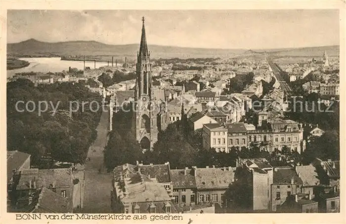 Bonn_Rhein von der Muensterkirche aus gesehen Bonn_Rhein postalisch gelaufen 1929 Erhaltung siehe scans [FriedD77] Frierer