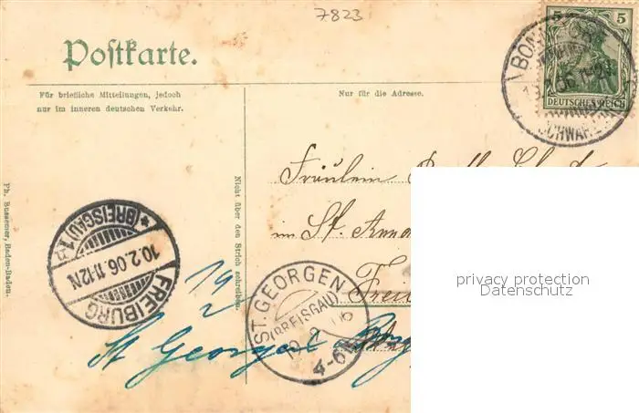 Bonndorf_Schwarzwald Lothenbachklamm Wasserfall Gesamtansicht Bonndorf Schwarzwald postalisch gelaufen 1906 Erhaltung siehe scans [FriedD77] Frierer