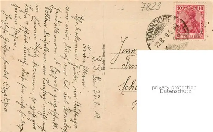 Bonndorf_Schwarzwald Ortsansicht mit Kirche Bonndorf Schwarzwald postalisch gelaufen 1919 Erhaltung siehe scans [FriedD77] Frierer