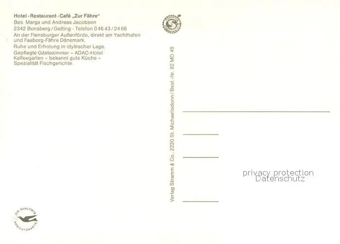 Bonsberg_Gelting Restaurant-Cafe Zur Faehre postalisch nicht gelaufen nach 1965 Erhaltung siehe scans [LiesaD40] LiesID40