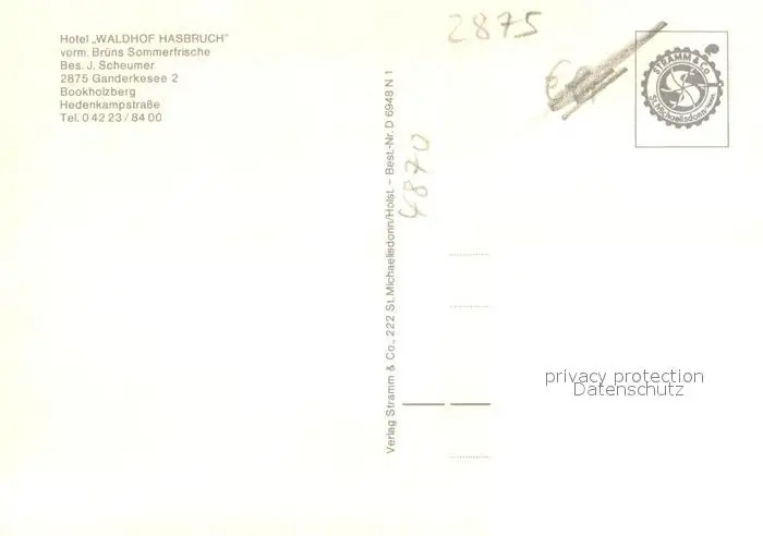 Bookholzberg Hotel Waldhof Hasbruch Fremdenzimmer Wappen Waldpartie Bookholzberg postalisch nicht gelaufen nach 1965 Erhaltung siehe scans [FriedD77] Frierer