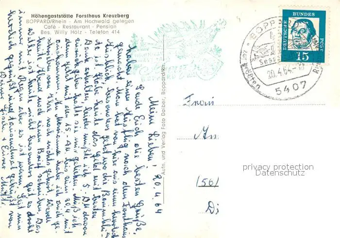 Boppard_Rhein Kreuzberg Kapelle Panorama Blick vom Forsthaus Boppard Rhein postalisch gelaufen 1964 Erhaltung siehe scans [FriedD77] Frierer