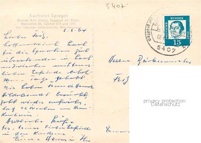 Boppard_Rhein Kurhotel Spiegel Gastraeume Boppard Rhein postalisch gelaufen 1964 Erhaltung siehe scans [WerneD78] WernPID7