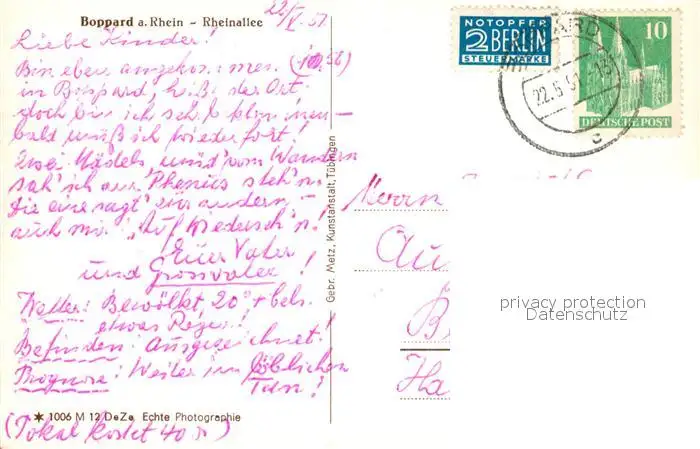 Boppard_Rhein Rheinallee Boppard Rhein postalisch gelaufen 1921-1965 Erhaltung siehe scans [NatalD47] NataID47