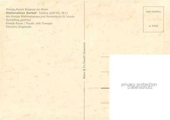 Boppard_Rhein Stationshaus Kurhof des Kneipp-Krankenhauses und Sanatoriums St Ursula Boppard Rhein postalisch nicht gelaufen nach 1965 Erhaltung siehe scans [WerneD78] WernPID7