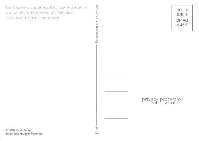 Borkheide Grundschule Feuerwehr Bahnhof Naturbad Edeka Supermarkt Ortsschild Borkheide postalisch nicht gelaufen nach 1965 Erhaltung siehe scans [FriedD77] Frierer