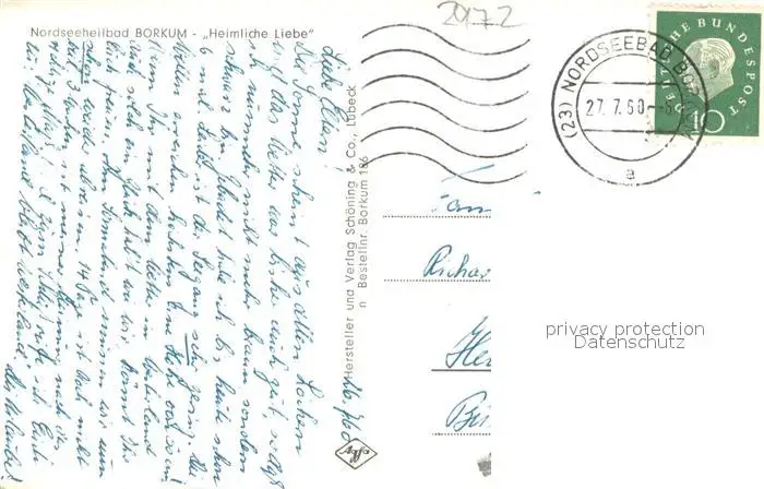 Borkum Heimliche Liebe Gaststaette Strandpromenade Nordseeheilbad Borkum postalisch gelaufen 1960 Erhaltung siehe scans [FriedD77] Frierer