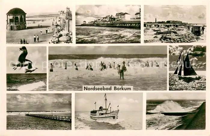 Borkum Strandpromenade Badespass Segeln Mole Schiff Brandung Borkum postalisch nicht gelaufen 1921-1965 Erhaltung siehe scans [FriedD77] Frierer