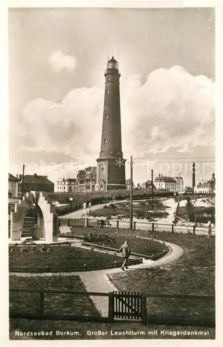 AK / Ansichtskarte Borkum_Nordseebad Grosser Leuchtturm mit Kriegerdenkmal Borkum_Nordseebad