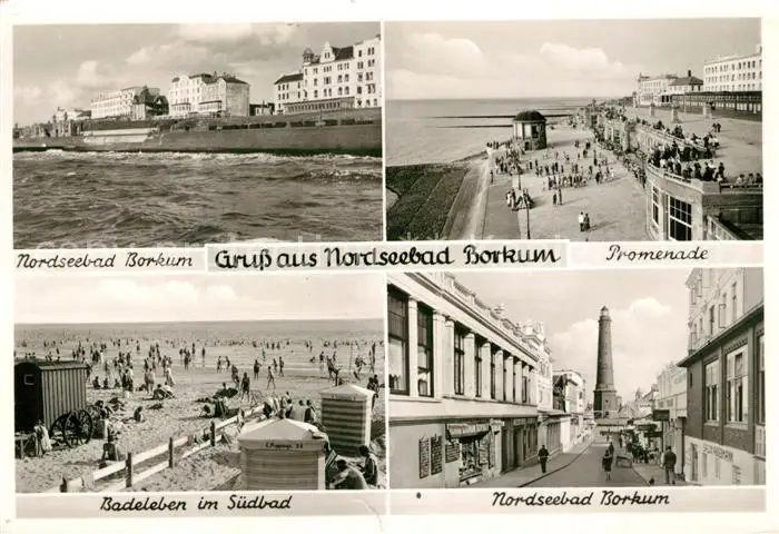 AK / Ansichtskarte Borkum_Nordseebad Strand Leuchtturm Promenade Borkum_Nordseebad