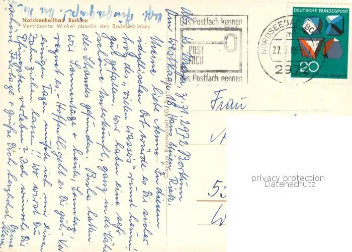 Borkum_Nordseebad Vertraeumte Winkel abseits des Badebetriebes Borkum_Nordseebad postalisch gelaufen 1968 Erhaltung siehe scans [FriedD77] Frierer