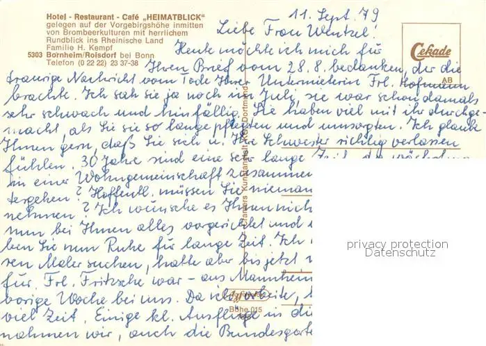 Bornheim_Rheinland Restaurant-Hotel Heimatblick Bonn Siebengebirge Bornheim_Rheinland postalisch nicht gelaufen 1979 Erhaltung siehe scans [LiesaD40] LiesID40