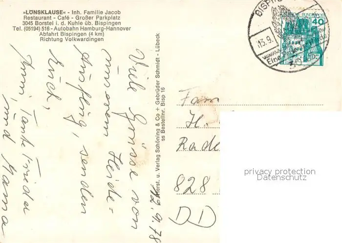 Borstel_Bispingen Loensklause Restaurant Café Terrasse Borsteler Schweiz Borstel_Bispingen postalisch gelaufen 1978 Erhaltung siehe scans [FriedD77] Frierer