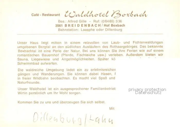 Boxbach Café Restaurant Waldhotel Landschaftspanorama Boxbach postalisch nicht gelaufen nach 1965 Werbekarte (keine Postkarte) Erhaltung siehe scans [FriedD77] Werbekarte (keine Postkarte) Frierer