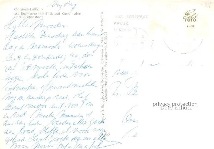 Bramsche_Hase Fliegeraufnahme Panorama m. Kanalhafen u. Gartenstadt Bramsche Hase postalisch gelaufen 1921-1965 Erhaltung siehe scans [LiesaD40] LiesID40