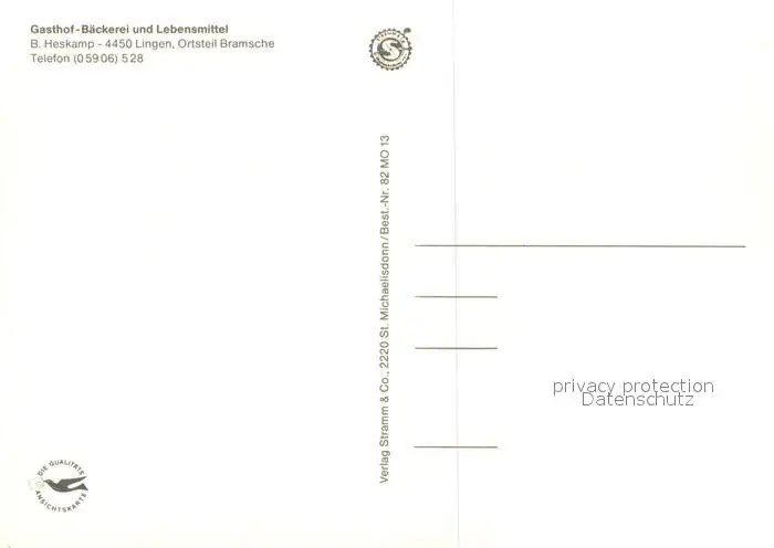 Bramsche_Lingen Gasthof Baeckerei und Lebensmittel Kirche Bramsche Lingen postalisch nicht gelaufen nach 1965 Erhaltung siehe scans [FriedD77] Frierer