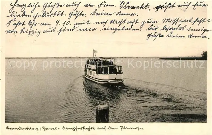 Brandenburg_Havel Dampferfahrt auf dem Plauer See Brandenburg Havel postalisch gelaufen 1938 Erhaltung siehe scans [WerneD78] WernPID7