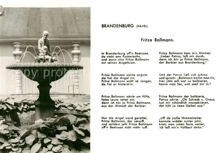 AK / Ansichtskarte Brandenburg_Havel Fritze Bollmann Brunnen und Gedicht Brandenburg Havel
