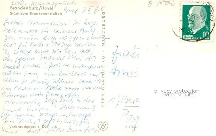 Brandenburg_Havel Staedtische Krankenanstalten Brandenburg Havel postalisch gelaufen 1963 Erhaltung siehe scans [FriedD77] Frierer
