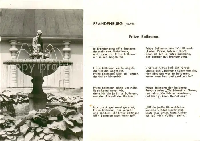 AK / Ansichtskarte Brandenburg__Havel Brunnen m. Fritze Bollmann u. Gedicht Spruch