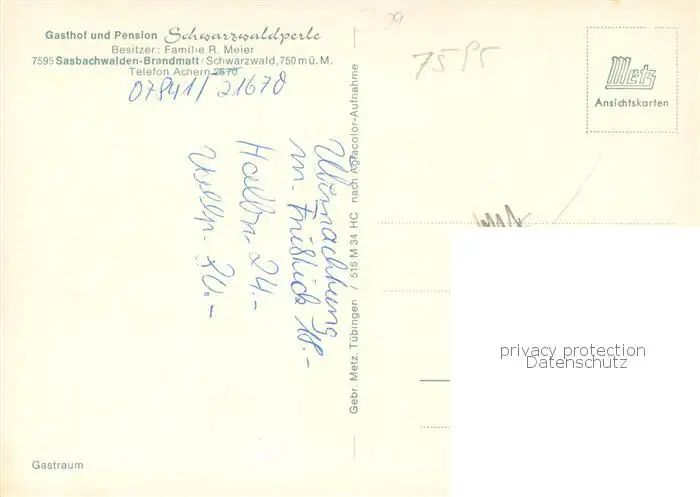 Brandmatt_Schwarzwald Gasthof Pension Schwarzwaldperle Gaststube Brandmatt Schwarzwald postalisch nicht gelaufen nach 1965 Erhaltung siehe scans [WerneD78] WernPID7