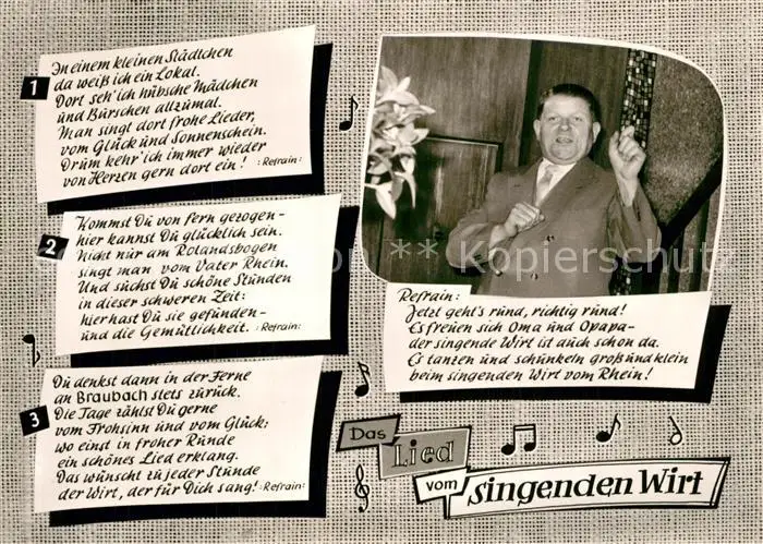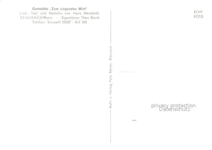 Braubach_Rhein Gaststaette Zum singenden Wirt Lied Braubach Rhein postalisch nicht gelaufen 1921-1965 Erhaltung siehe scans [FriedD77] Frierer