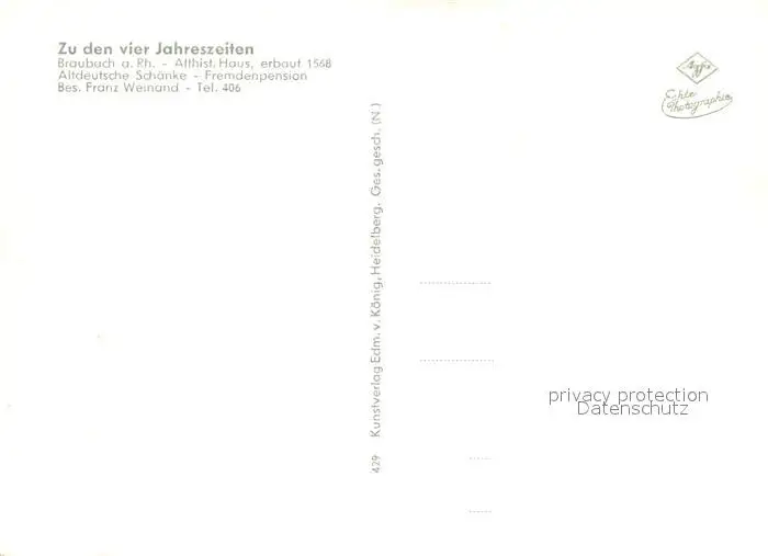 Braubach_Rhein Zu den vier Jahreszeiten Althist Haus Gastraeume Bar Braubach Rhein postalisch nicht gelaufen 1921-1965 Erhaltung siehe scans [WerneD78] WernPID7