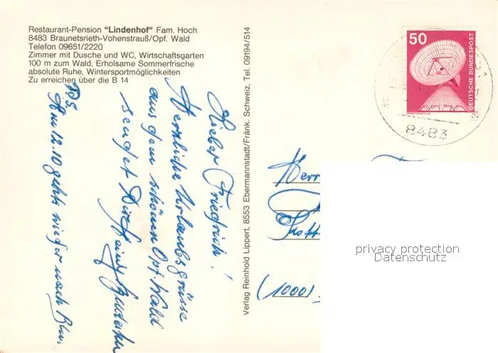 Braunetsrieth Restaurant Pension Lindenhof Blick ueber die Feld Oberpfaelzer Wald Braunetsrieth postalisch gelaufen nach 1965 Erhaltung siehe scans [FriedD77] Frierer