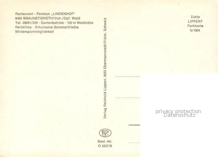 Braunetsrieth Restaurant Pension Lindenhof Braunetsrieth postalisch nicht gelaufen nach 1965 Erhaltung siehe scans [LiesaD40] LiesID40
