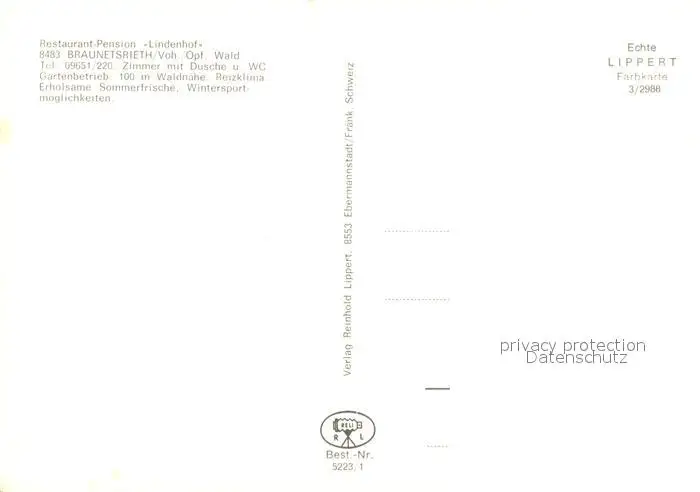 Braunetsrieth Restaurant Pension Lindenhof Braunetsrieth postalisch nicht gelaufen nach 1965 Erhaltung siehe scans [WerneD78] WernPID7