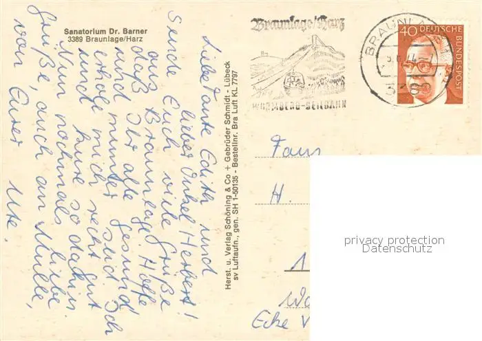 Braunlage Sanatorium Dr. Barner Fliegeraufnahme Braunlage postalisch gelaufen 1974 Erhaltung siehe scans [FriedD77] Frierer
