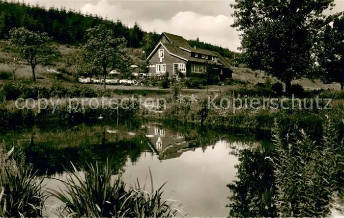 AK / Ansichtskarte Braunlage Waldgaststaette Forellenteich Aussenansicht m. Teich Braunlage