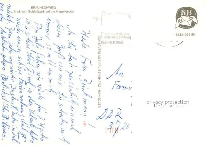 Braunschweig Blick vom Schlosspark auf die Magnikirche Braunschweig postalisch gelaufen nach 1965 Erhaltung siehe scans [WerneD78] WernPID7
