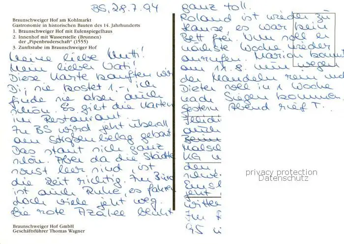 Braunschweig Braunschweiger Hof mit Eulenspiegelhaus Innenhof mit Wasserstelle Zunftstube im Braunschweiger Hof Braunschweig postalisch nicht gelaufen 1994 Erhaltung siehe scans [WerneD78] WernPID7