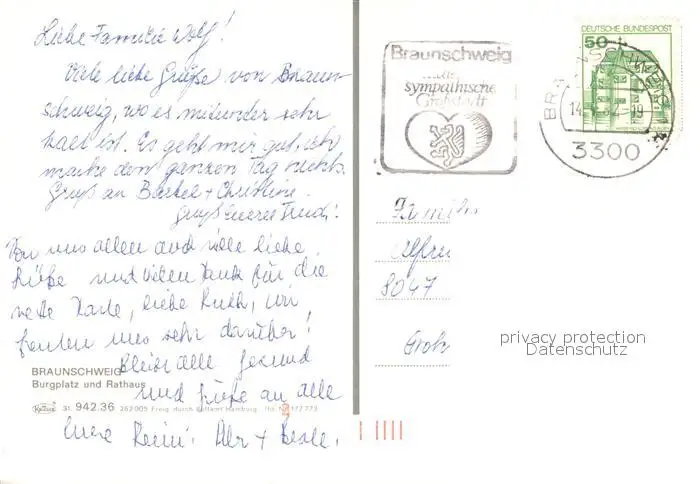 Braunschweig Burgplatz und Rathaus Braunschweig postalisch gelaufen 1982 Fliegeraufnahme Erhaltung siehe scans [FriedD77] Fliegeraufnahme Frierer