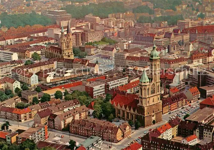 Braunschweig Fliegeraufnahme mit St Andreas Kirche St Katharinen Kirche und Theater Braunschweig postalisch nicht gelaufen nach 1965 Erhaltung siehe scans [WerneD78] WernPID7