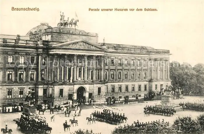 AK / Ansichtskarte Braunschweig Parade unserer Husaren vor dem Schloss Braunschweig