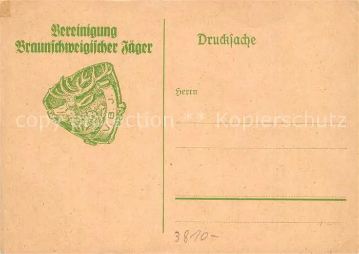 Braunschweig Vereinigung Braunschweiger Jaeger Braunschweig postalisch nicht gelaufen bis 1920 Erhaltung siehe scans [WerneD78] WernPID7