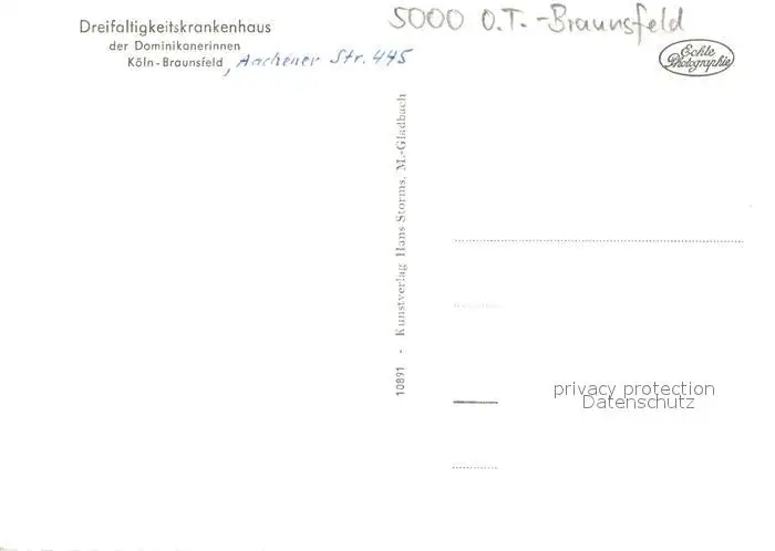 Braunsfeld Dreifaltigkeitskrankenhaus der Dominikanerinnen Braunsfeld postalisch nicht gelaufen nach 1965 Erhaltung siehe scans [WerneD78] WernPID7
