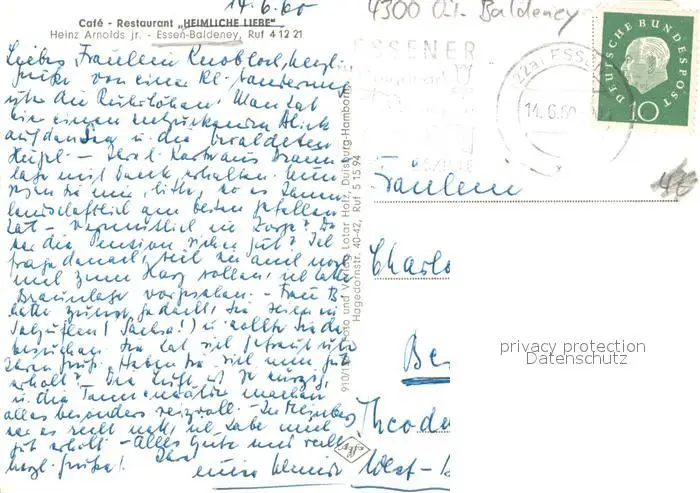 Bredeney Café Restaurant Heimliche Liebe Terrasse Fernsicht Baldeneysee Bredeney postalisch gelaufen 1960 Erhaltung siehe scans [FriedD77] Frierer