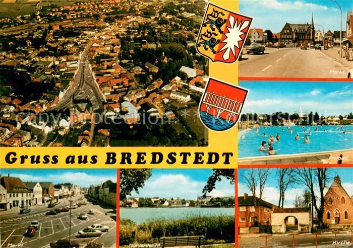 Bredstedt Fliegeraufnahme Marktpartien Muehlenteich Kirche Bredstedt postalisch gelaufen 1980 Erhaltung siehe scans [WerneD78] WernPID7