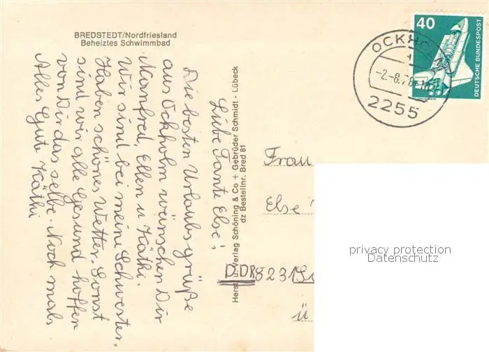Bredstedt Schwimmbad Bredstedt postalisch gelaufen 1978 Erhaltung siehe scans [WerneD78] WernPID7