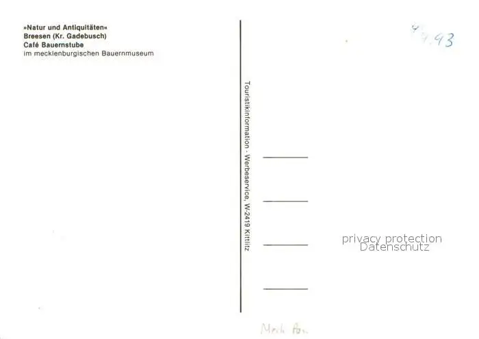 Breesen_Neubrandenburg Cafe Bauernstube Breesen Natur und Antiquitaeten im mecklenburgischen Bauernmuseum Breesen Neubrandenburg postalisch nicht gelaufen nach 1965 Erhaltung siehe scans [WerneD78] WernPID7