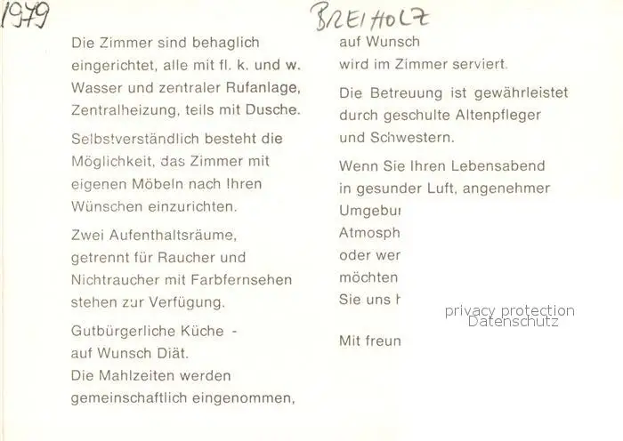 Breiholz Altenpension Breiholzer Hof Restaurant Terrasse Breiholz postalisch nicht gelaufen 1979 Werbekarte (keine Postkarte) Erhaltung siehe scans [FriedD77] Werbekarte (keine Postkarte) Frierer