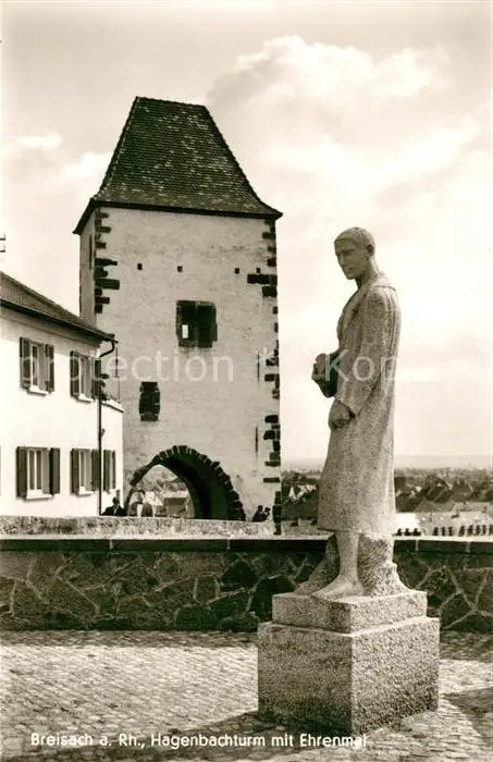AK / Ansichtskarte Breisach_Rhein Hagenbachturm mit Ehrenmal Statue Breisach Rhein