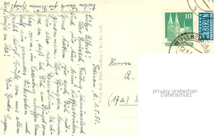 Breisach_Rhein Hochaltar Mittelbild im Stephansmuenster Breisach Rhein postalisch gelaufen 1951 Erhaltung siehe scans [WerneD78] WernPID7