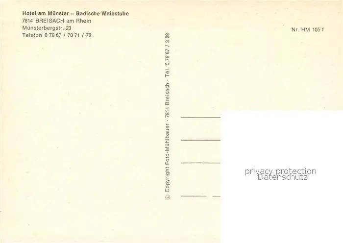 Breisach_Rhein Hotel am Muenster Restaurant Badische Weinstube Breisach Rhein postalisch nicht gelaufen nach 1965 Erhaltung siehe scans [FriedD77] Frierer