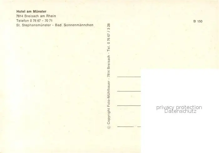 Breisach_Rhein Hotel am Muenster St Stephansmuenster Bad Sonnenmaennchen Breisach Rhein postalisch nicht gelaufen nach 1965 Erhaltung siehe scans [WerneD78] WernPID7