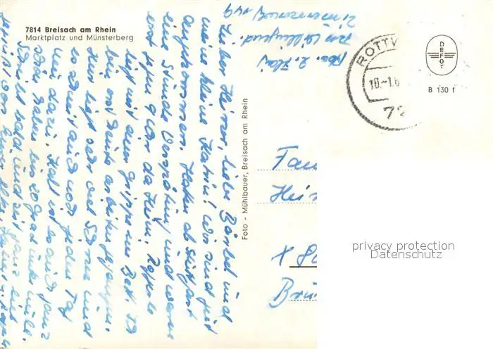 Breisach_Rhein Marktplatz und Muensterberg Breisach Rhein postalisch gelaufen ca. 1965 Erhaltung siehe scans [FriedD77] Frierer